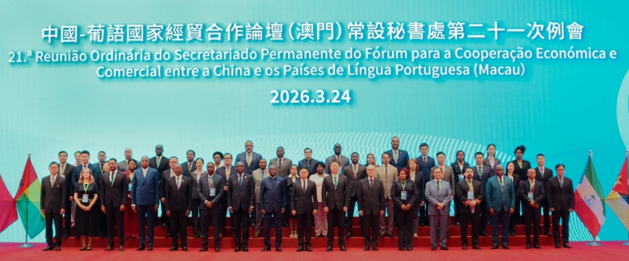 No dia 24 de março de 2026, realizou se em Macau a 21.ª Reunião Ordinária do Secretariado Permanente do Fórum para a Cooperação Económica e Comercial entre a China e os Países de Língua Portuguesa (Fórum Macau).