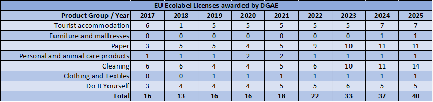 Products and Services with EU Ecolabel Licence awarded by DGAE